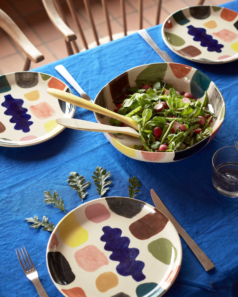 The new Mottle Ceramics range is the latest addition to our Stoneware collection and has a colourful abstract design, inspired by an artist’s painting palette.