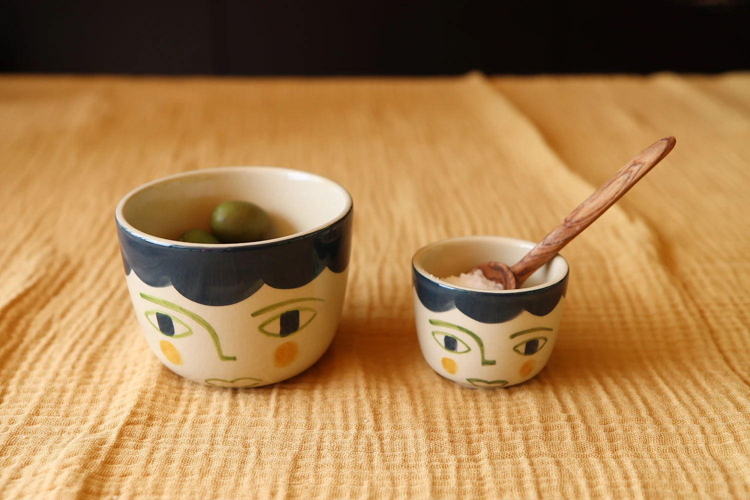 Meet Violet, with her rosy cheeks and distinctive blue barnet. Every cup is painted by hand, meaning each one is unique.